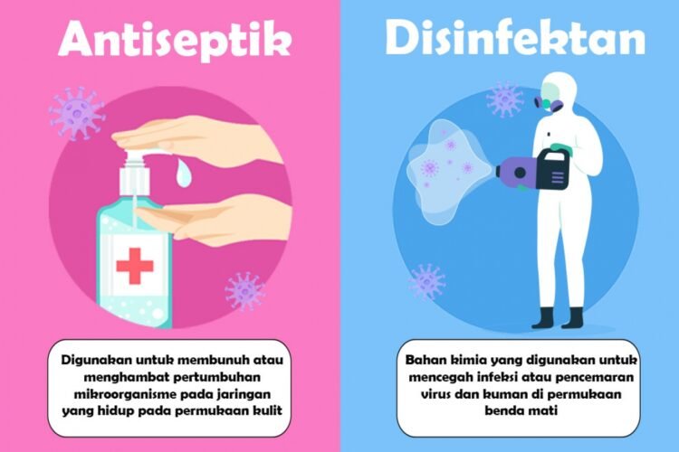 Antiseptik pembunuh bakteri atau virus yang dikhususkan untuk bagian-bagian tubuh seperti tangan. Sedangkan disinfektan pembunuh bakteri, kuman atau virus untuk alat-alat yang kita gunakan sehari-hari.