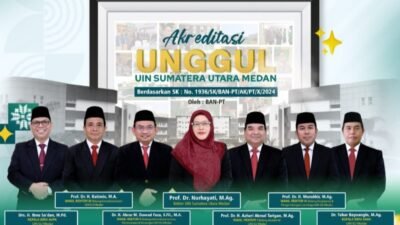 Beritaenam.com | Universitas Islam Negeri Sumatera Utara (UIN-SU) terus menorehkan prestasi. Setelah melalui perjuangan dan upaya panjang , UIN-SU Medan berhasil meraih akreditasi Perguran Tinggi (APT) dengan predikat ‘Unggul’ dari Badan Akreditasi Nasional Perguruan Tinggi (BAN-PT).